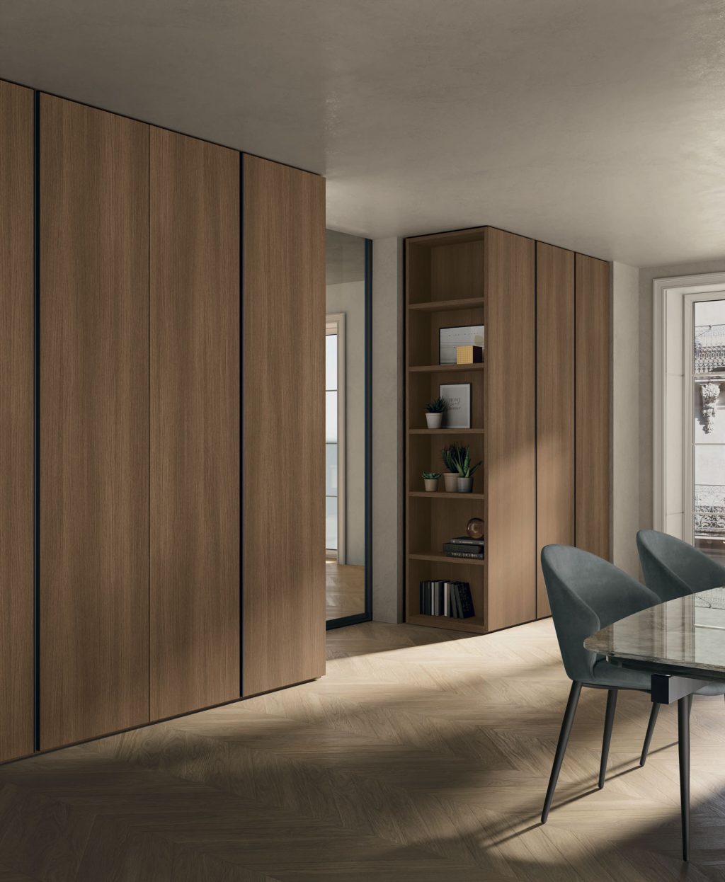 L’armadio Gola del brand Tomasella è pensato per chi cerca una soluzione al contempo elegante e funzionale per la zona notte. Il design si distingue per l’anta battente liscia con una maniglia integrata “gola” che facilita l’apertura e chiusura senza sporgenze visibili, valorizzando così la pulizia dei volumi. La struttura e le ante sono disponibili in diverse finiture — materico rovere, laccato opaco, vetro fumè — permettendo un’abbinabilità perfetta con l’ambiente circostante. Con moduli componibili e dimensioni modulabili (ad esempio L 304 × P 62 × H 255 cm), Gola si adatta sia ad ambienti generosi sia a spazi più contenuti.