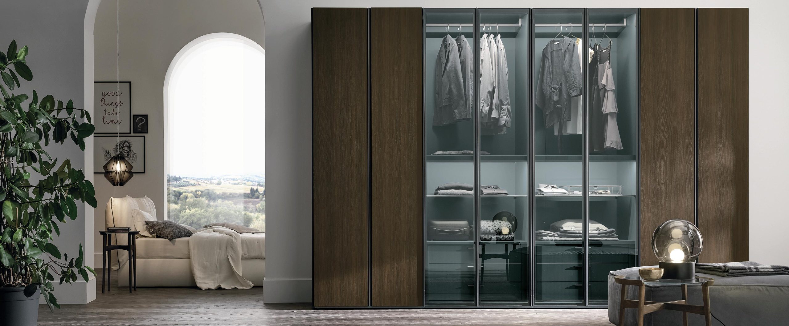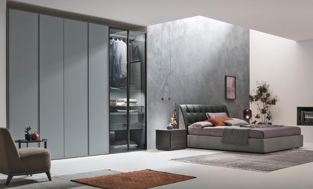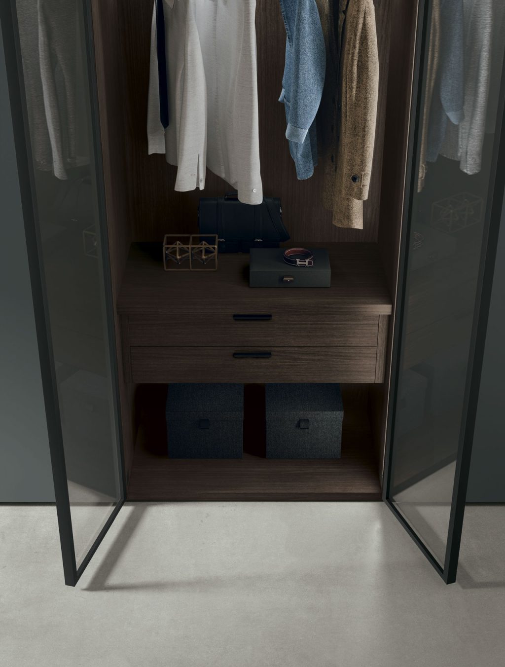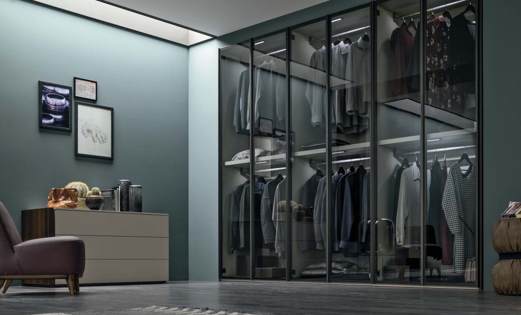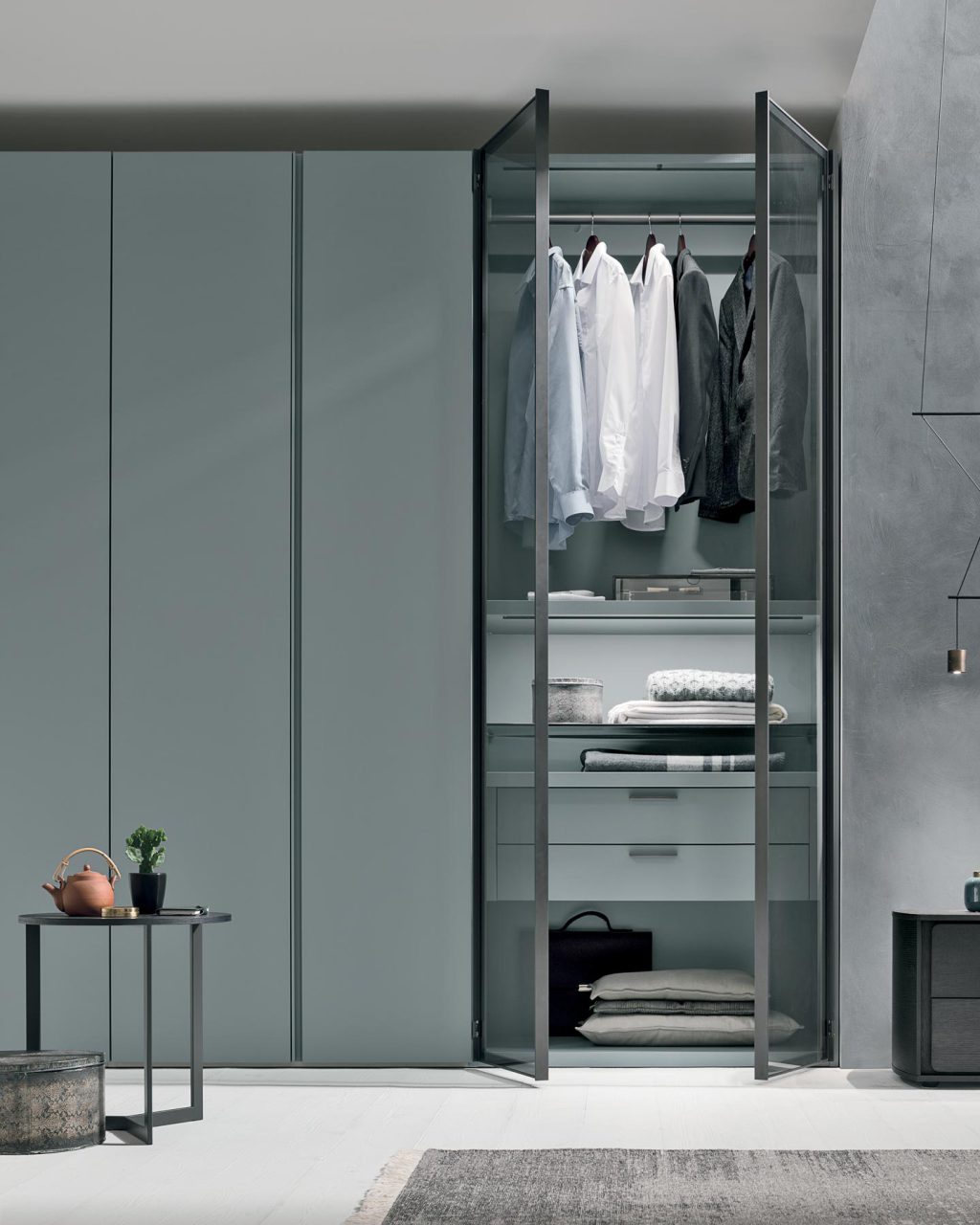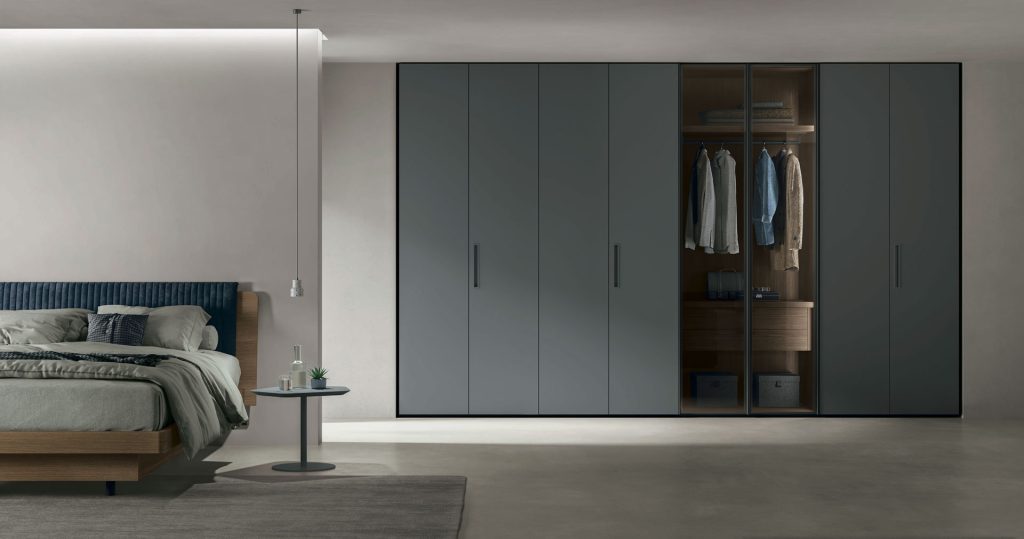L’armadio Metropolis di Tomasella trasforma la zona notte o il guardaroba in un ambiente dal forte impatto visivo e metodico nello stile. L’elemento distintivo è l’anta in vetro con telaio metallico (finitura antracite) che lascia intravedere interni curati e ben ordinati, senza rinunciare alla riservatezza.