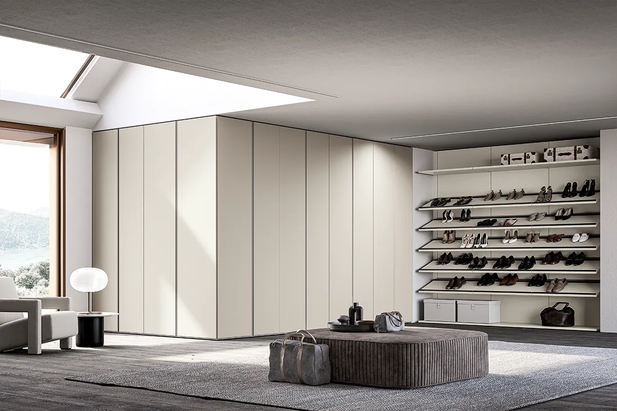 Finiture eleganti, qualità costruttiva e possibilità di personalizzare interni e volumi rendono questo armadio ideale per camere da letto contemporanee, mansarde e zone notte dove ordine, funzionalità e design devono convivere armoniosamente.