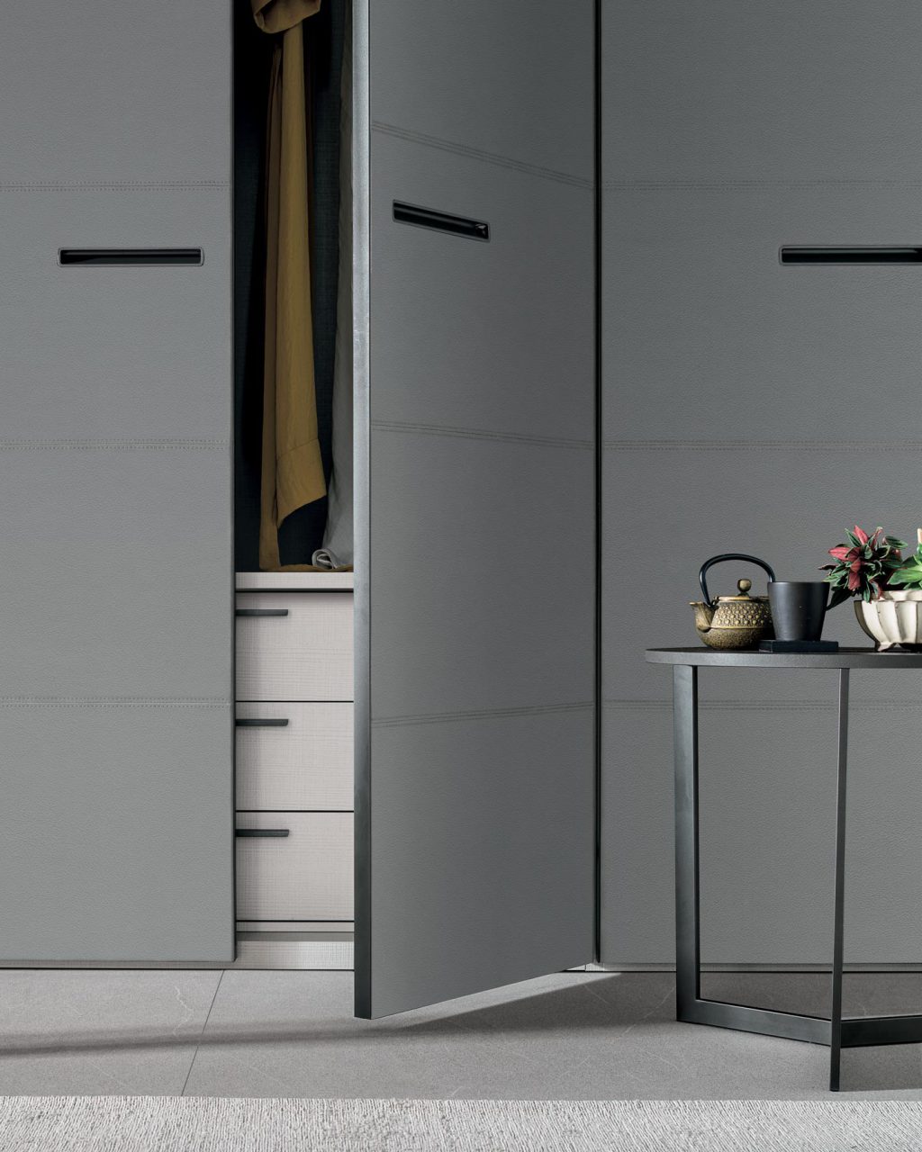 Come abiti eleganti, la pelle, l’ecopelle e l’econabuk vestono e rivestono l’armadio: finiture ricercate e originali per un arredo bello fuori e organizzato dentro. A Dress piace farsi notare e ammirare in tutta la sua bellezza.