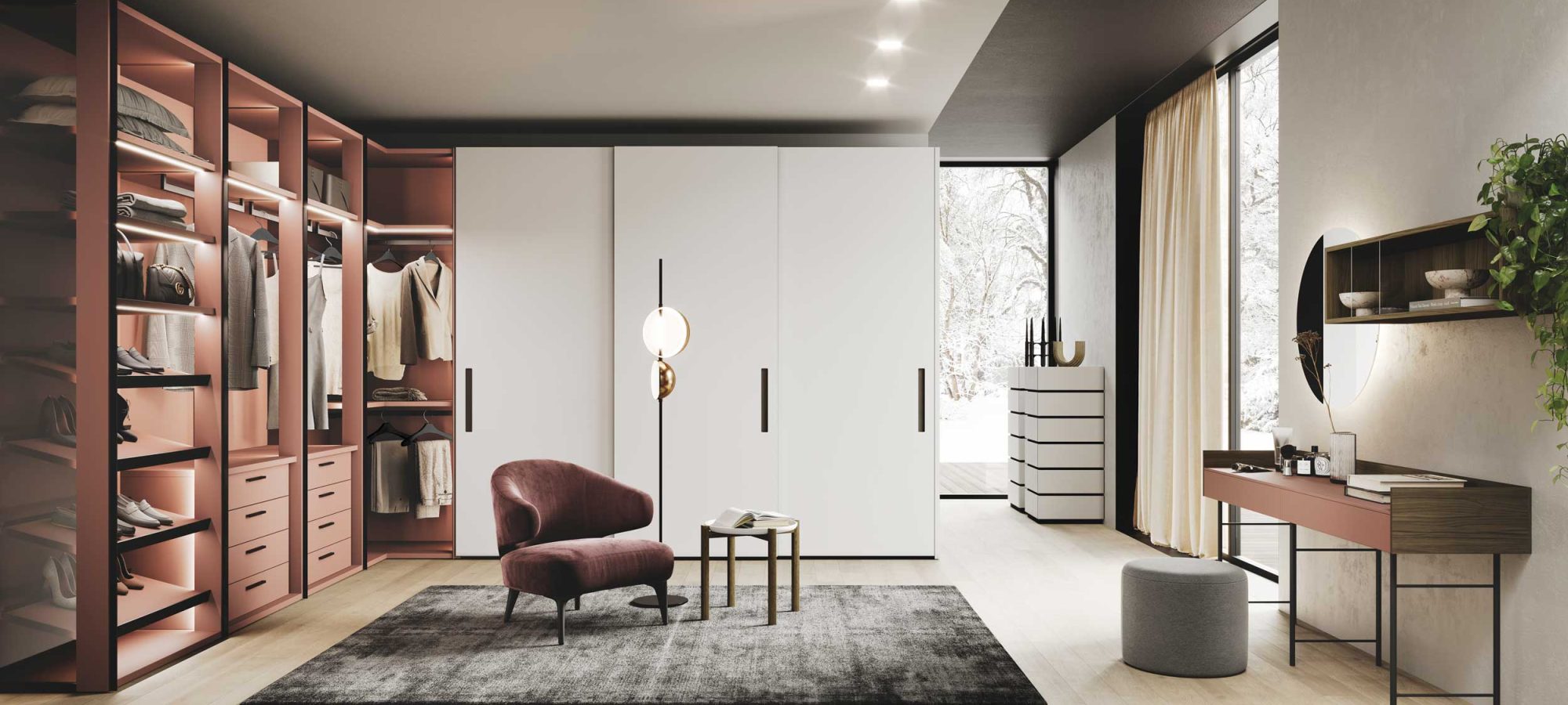 L’armadio Unlimited di Guzzini & Fontana è un sistema altamente sofisticato e personalizzabile: grazie ai suoi fianchi passanti e alla struttura aperta, i vani diventano continui, offrendo una fluidità visiva senza precedenti.