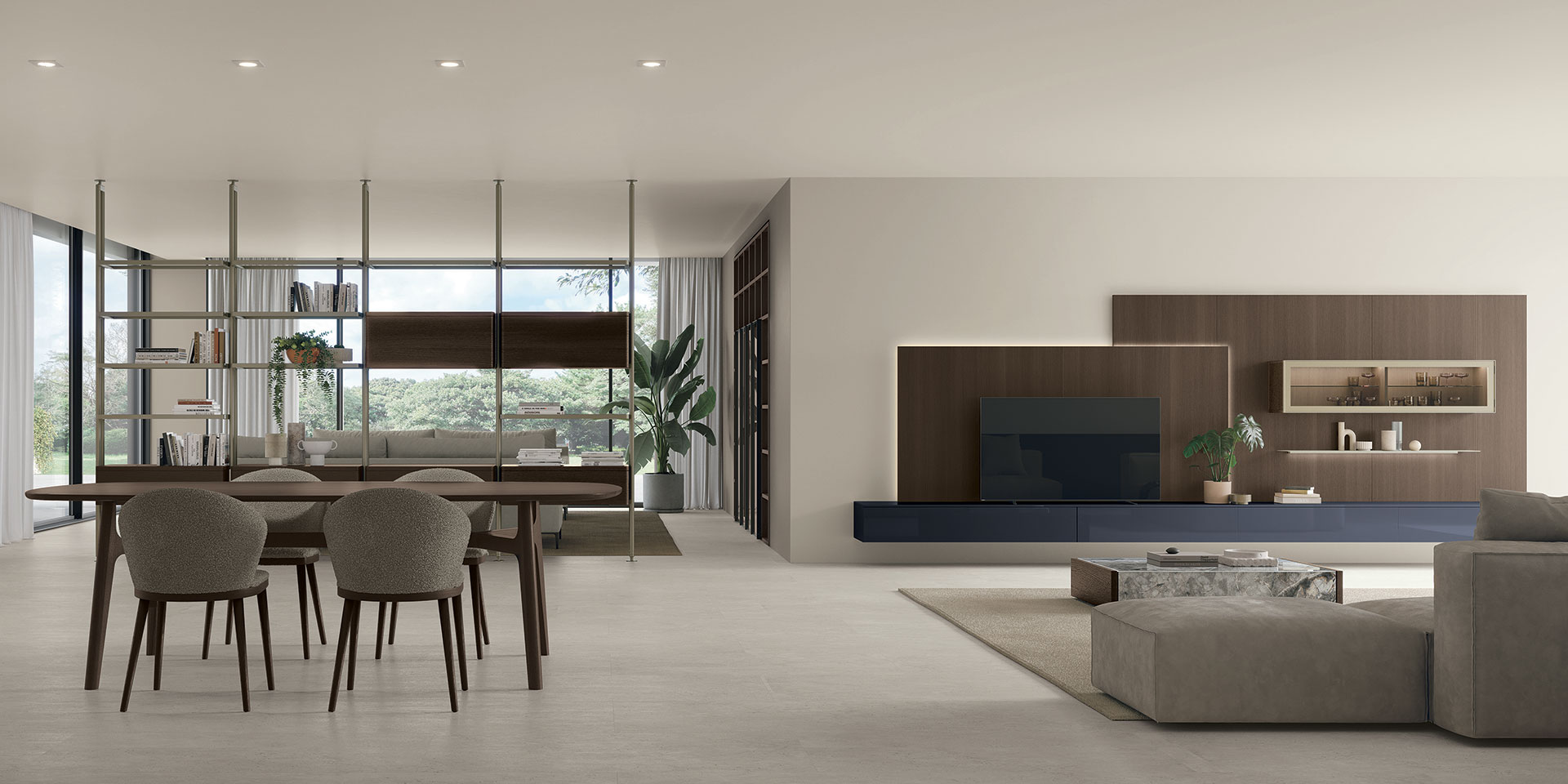 Grazie al sistema componibile della linea Atlante, è possibile personalizzare i moduli e adattarla allo spazio disponibile, con la libertà di combinare elementi a giorno, contenitori e vetrine. Perfetta per chi cerca un ambiente living funzionale e dallo stile contemporaneo.