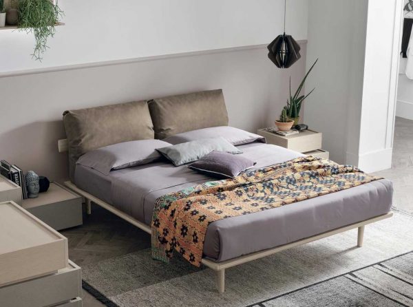 • La testiera del letto Piuma è formata da due morbidi cuscini estremamente confortevoli. Il suo carattere soft è contrastato dalle linee geometriche e dagli originali comodini hastag che abbiamo scelto per una marcata personalità
