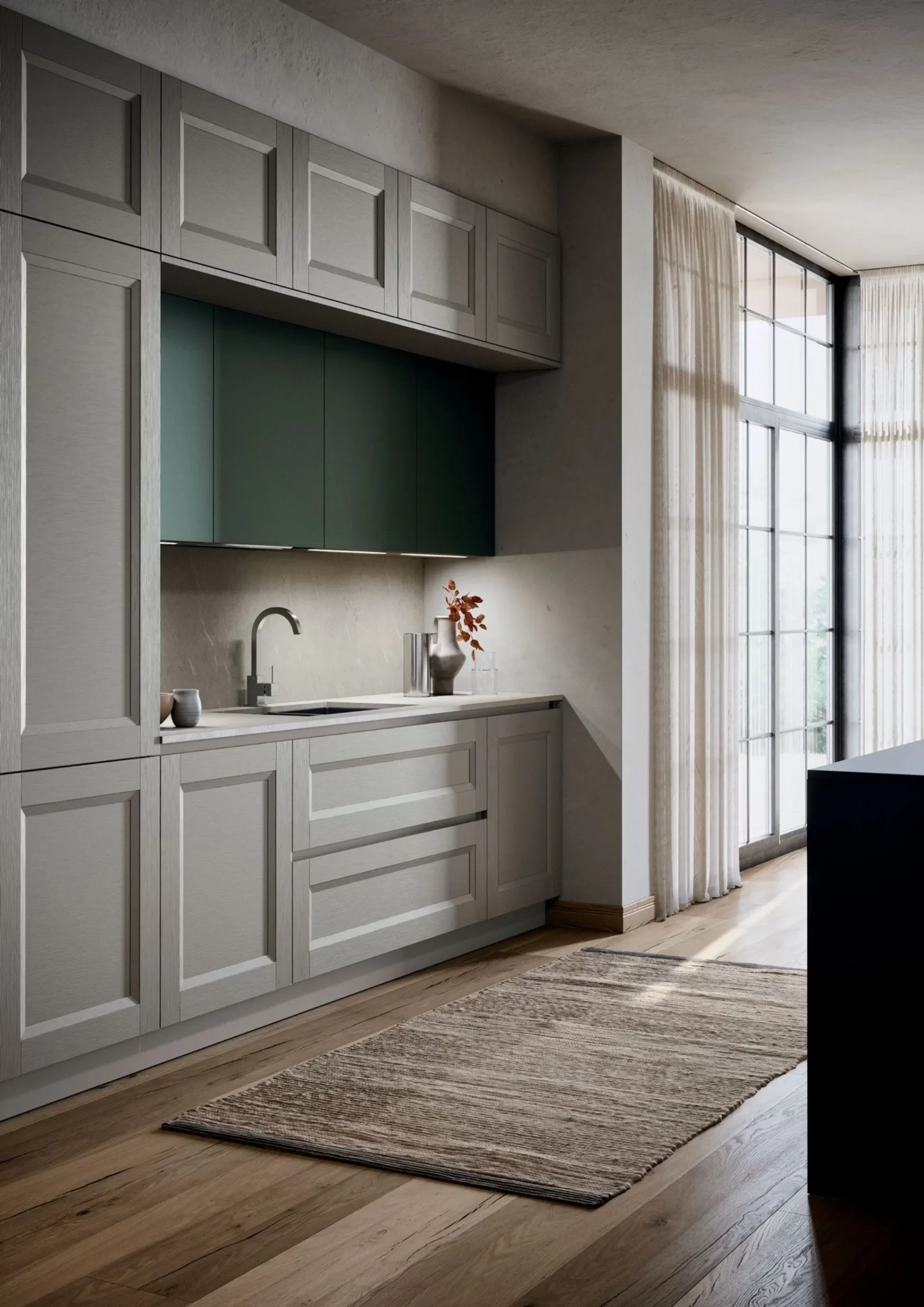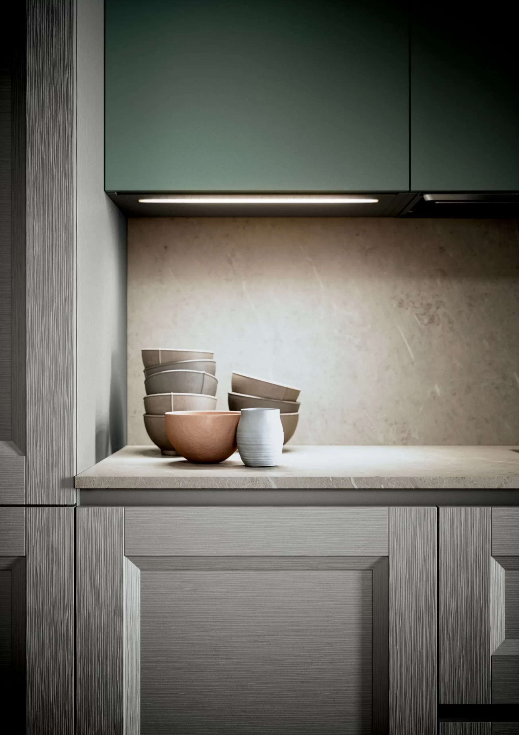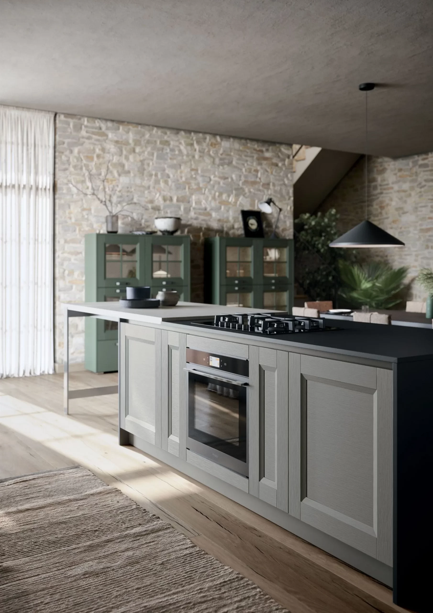 La Cucina Asia 04 di Forma Cucine fonde eleganza classica e personalità moderna: la maniglia a gola moderna si unisce alle linee morbide dell’anta a telaio, creando equilibrio e vitalità.