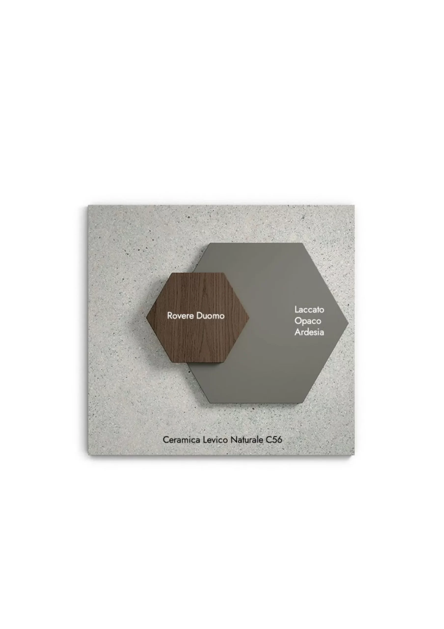 Il top e l’alzata sono in ceramica Levico Naturale, resistenti e raffinati.