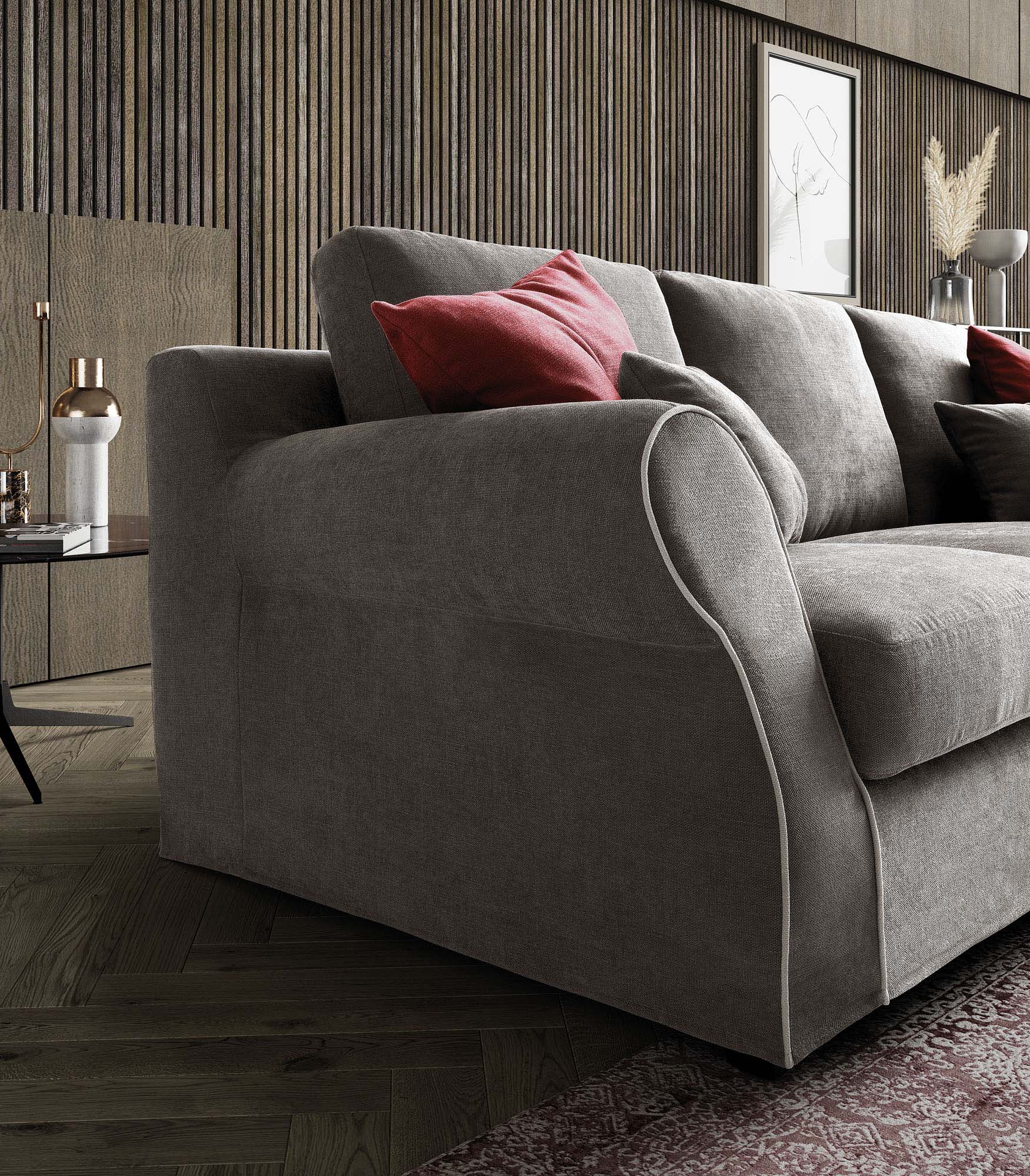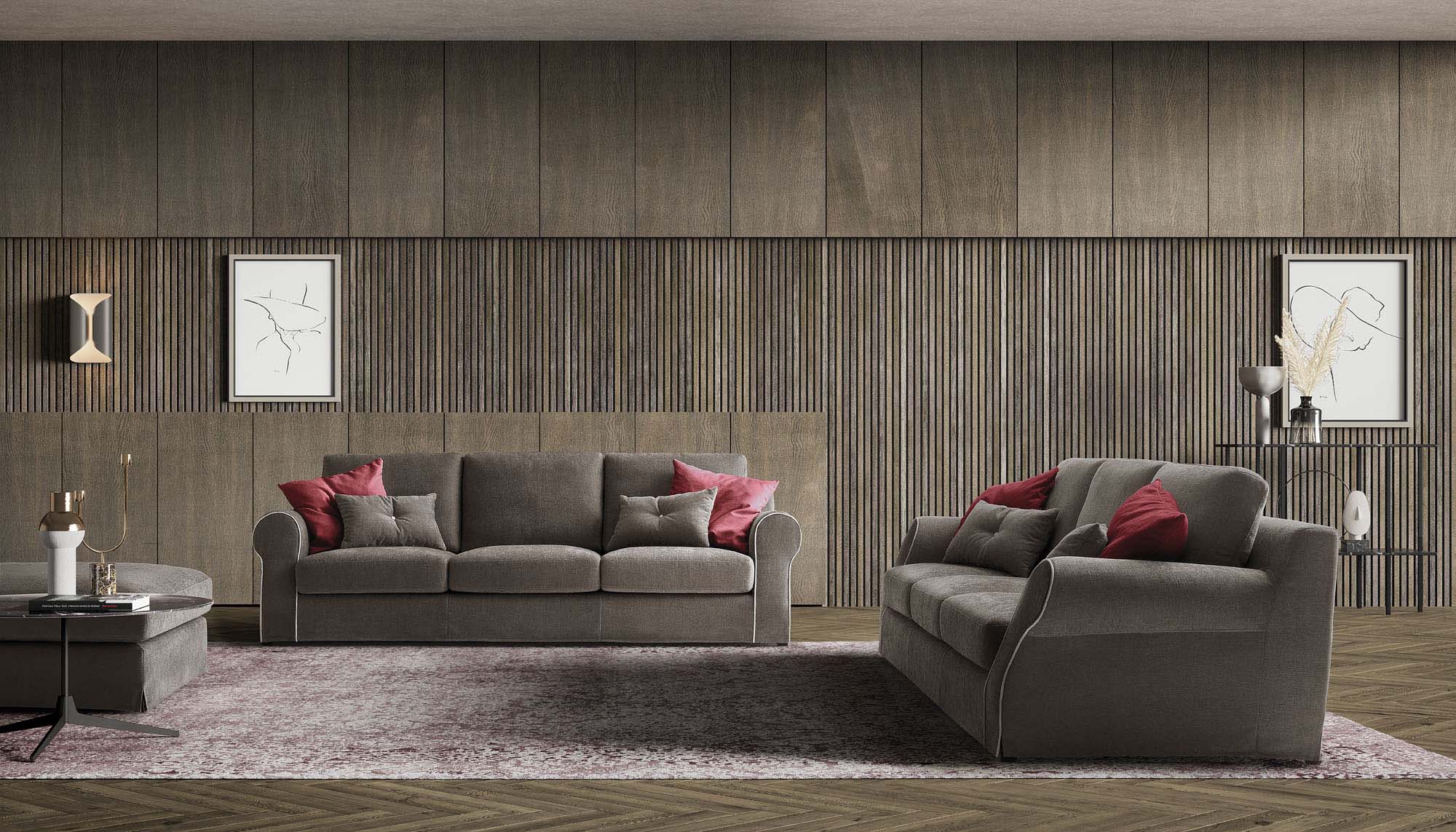 Il divano Abby di LeComfort incarna un’estetica elegante e ricercata: pensato per ambienti che amano il gusto “bon ton”, si distingue per le linee in rilievo sui braccioli, il richiamo al tradizionale senza rinunciare alla possibilità modulare. È completamente componibile e personalizzabile — puoi scegliere la misura, l’orientamento, il rivestimento in tessuto o pelle, e la versione con pouf abbinato. Abby è perfetto per dare al soggiorno un’impronta di stile classico dall’anima contemporanea.