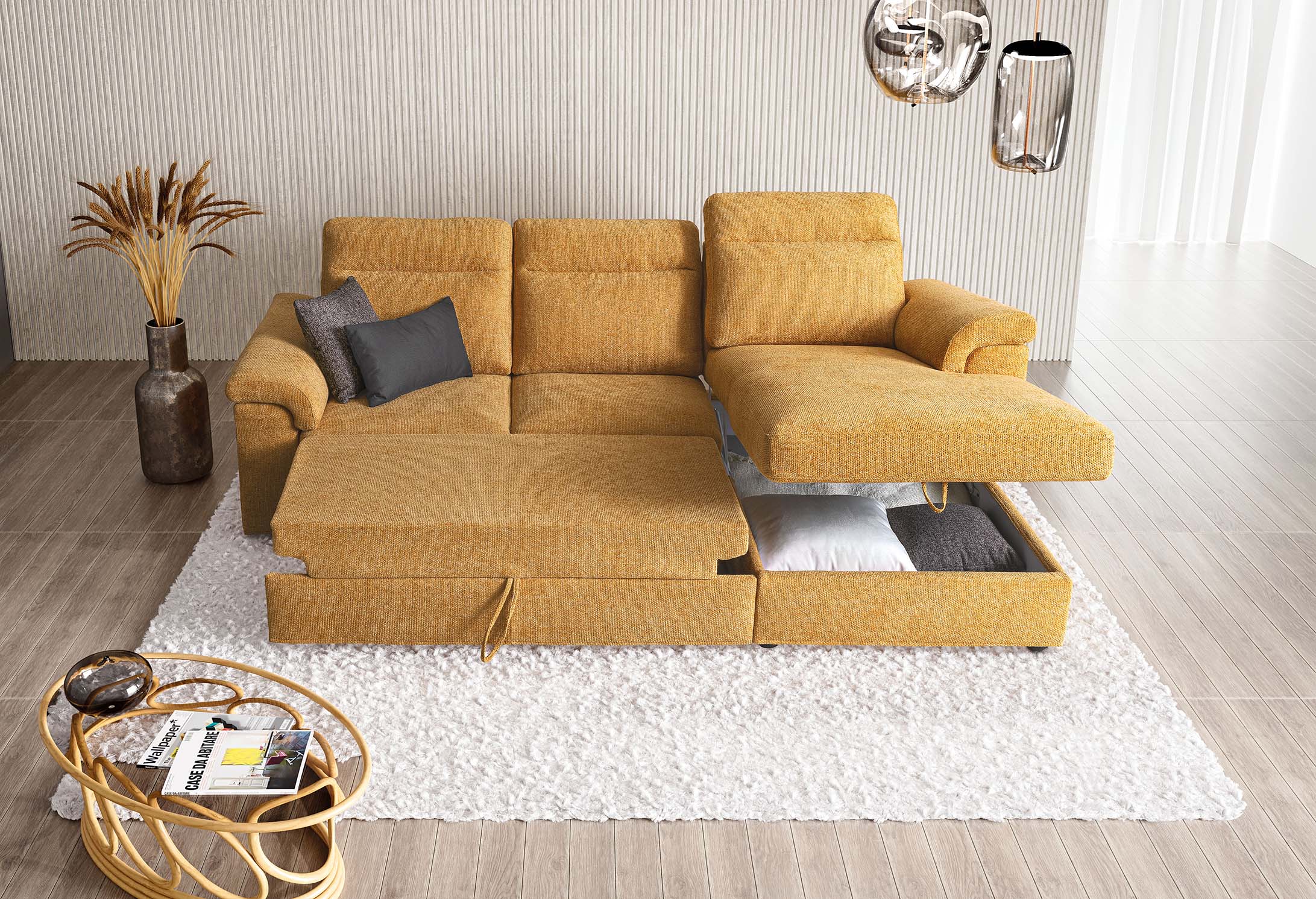 Il divano Bellargo di LeComfort è pensato per chi desidera un living elegante e funzionale. Con la sua seduta angolare asimmetrica, l’opzione contenitore integrato e il poggiapiedi estraibile, Bellargo combina stile moderno, comfort e ottimizzazione dello spazio. I rivestimenti disponibili in tessuto o pelle — completamente o parzialmente sfoderabili — permettono di personalizzare ogni aspetto secondo gusto e ambientazione. Perfetto per configurazioni componibili, angolari o con penisola, Bellargo diventa protagonista del soggiorno con versatilità e raffinatezza.