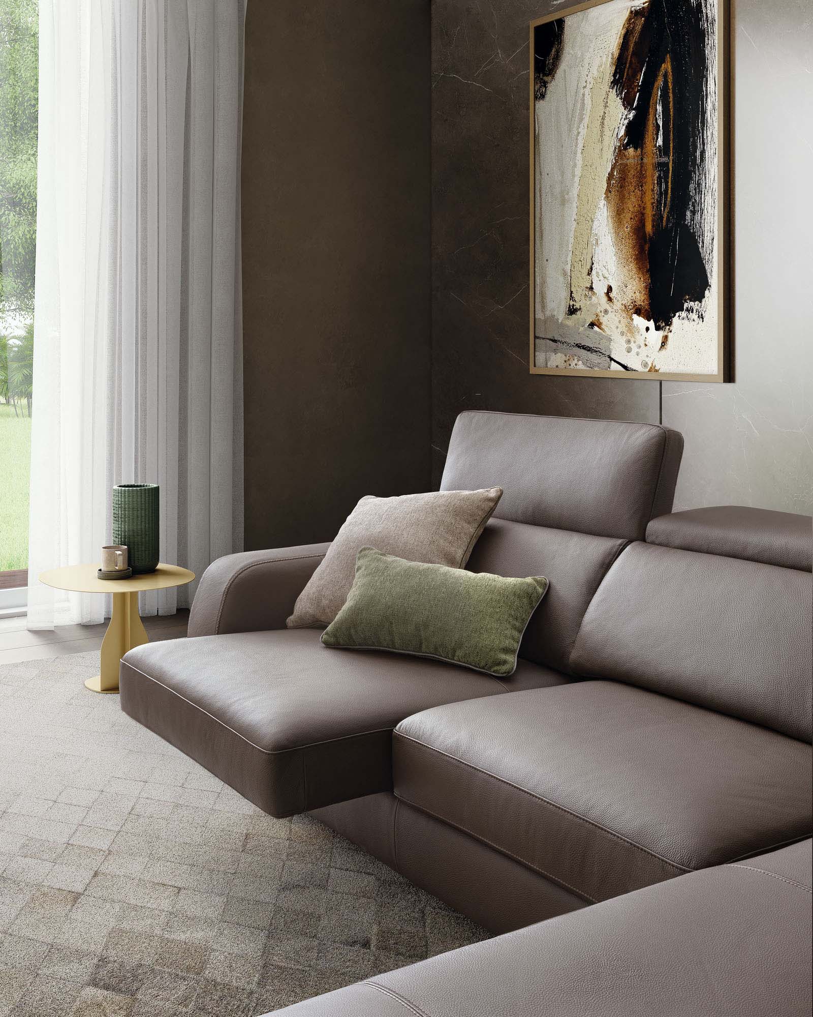 Scopri il Divano Graffiti LeComfort, una soluzione dinamica e raffinata per il tuo soggiorno. Grazie alle sedute estraibili, puoi trasformare la profondità della seduta in base alle tue esigenze. I poggiatesta regolabili offrono un supporto ergonomico personalizzato, mentre le cuciture a vista aggiungono un tocco di artigianalità sofisticata. Componibile con chaise longue, angolare o lineare, ed è disponibile in rivestimento tessuto o pelle (sfoderabile), il divano Graffiti esprime movimento e stile firmato LeComfort.