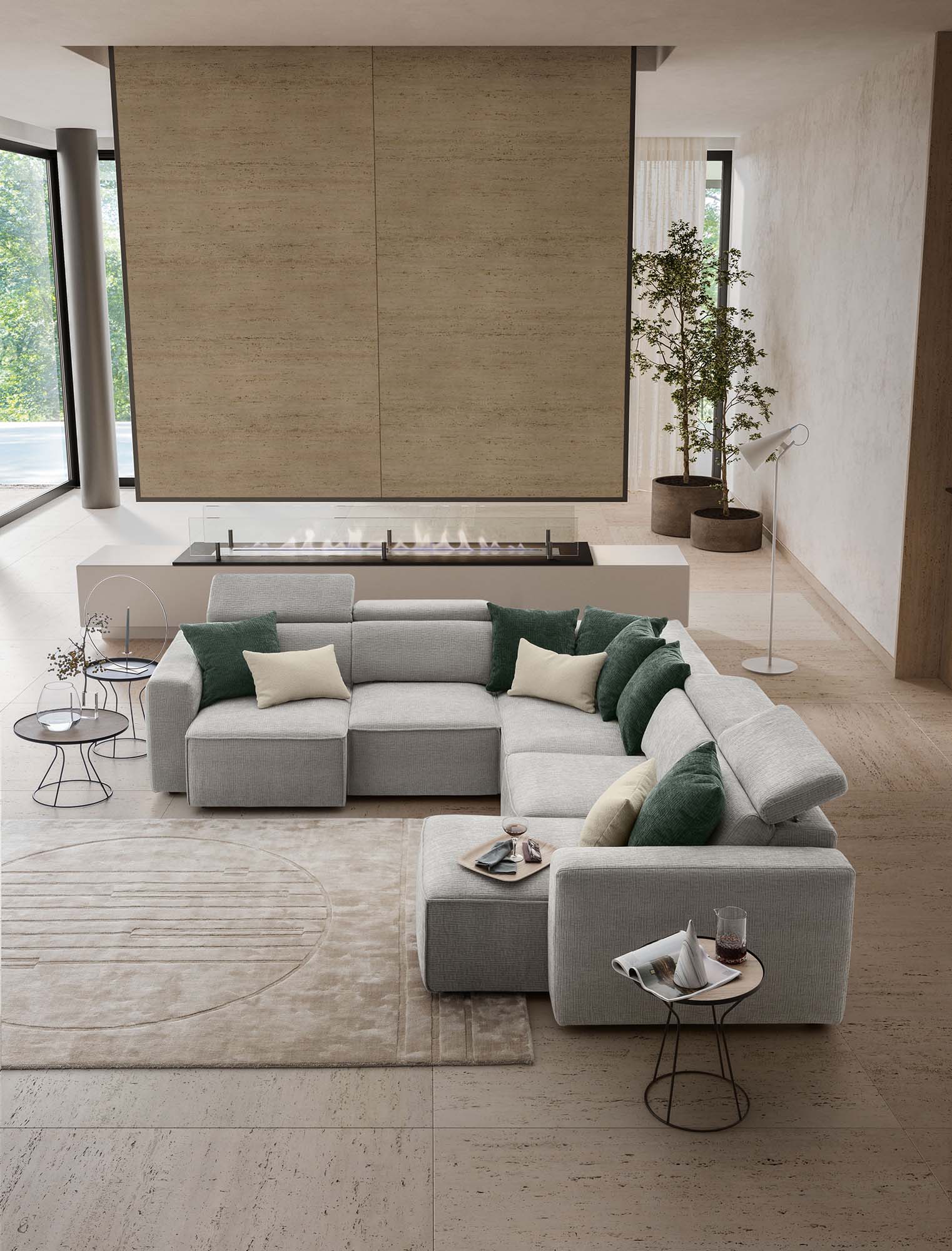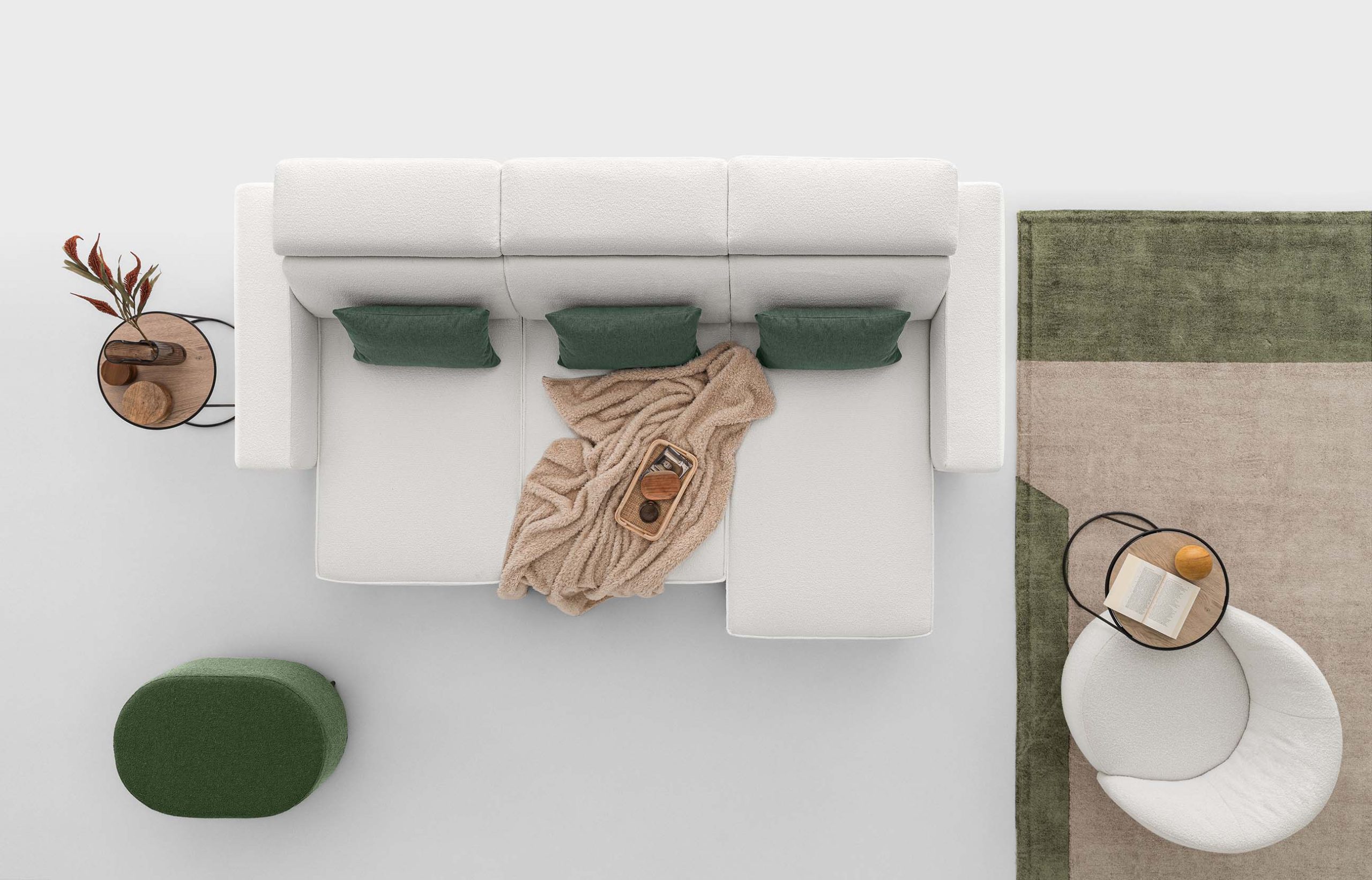 Grazie alla sua modularità, Hill è ideale sia in versioni lineari che angolari o con chaise-longue, adattandosi perfettamente al tuo spazio.