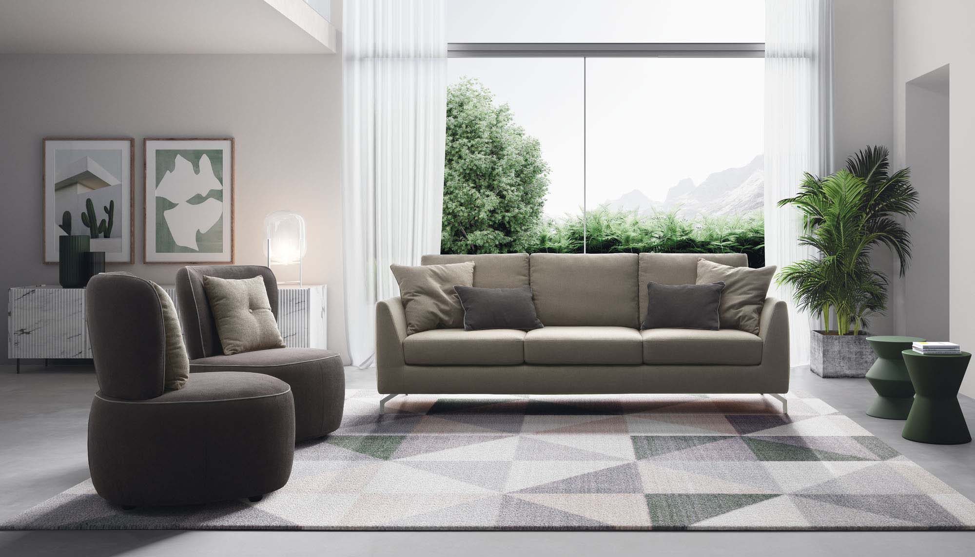 Dal profilo compatto, non “invade” lo spazio ma si integra con eleganza, garantendo una presenza sobria ma raffinata. I rivestimenti possono essere in tessuto o texil, completamente o parzialmente sfoderabili, per una personalizzazione completa in base alle tue esigenze estetiche.