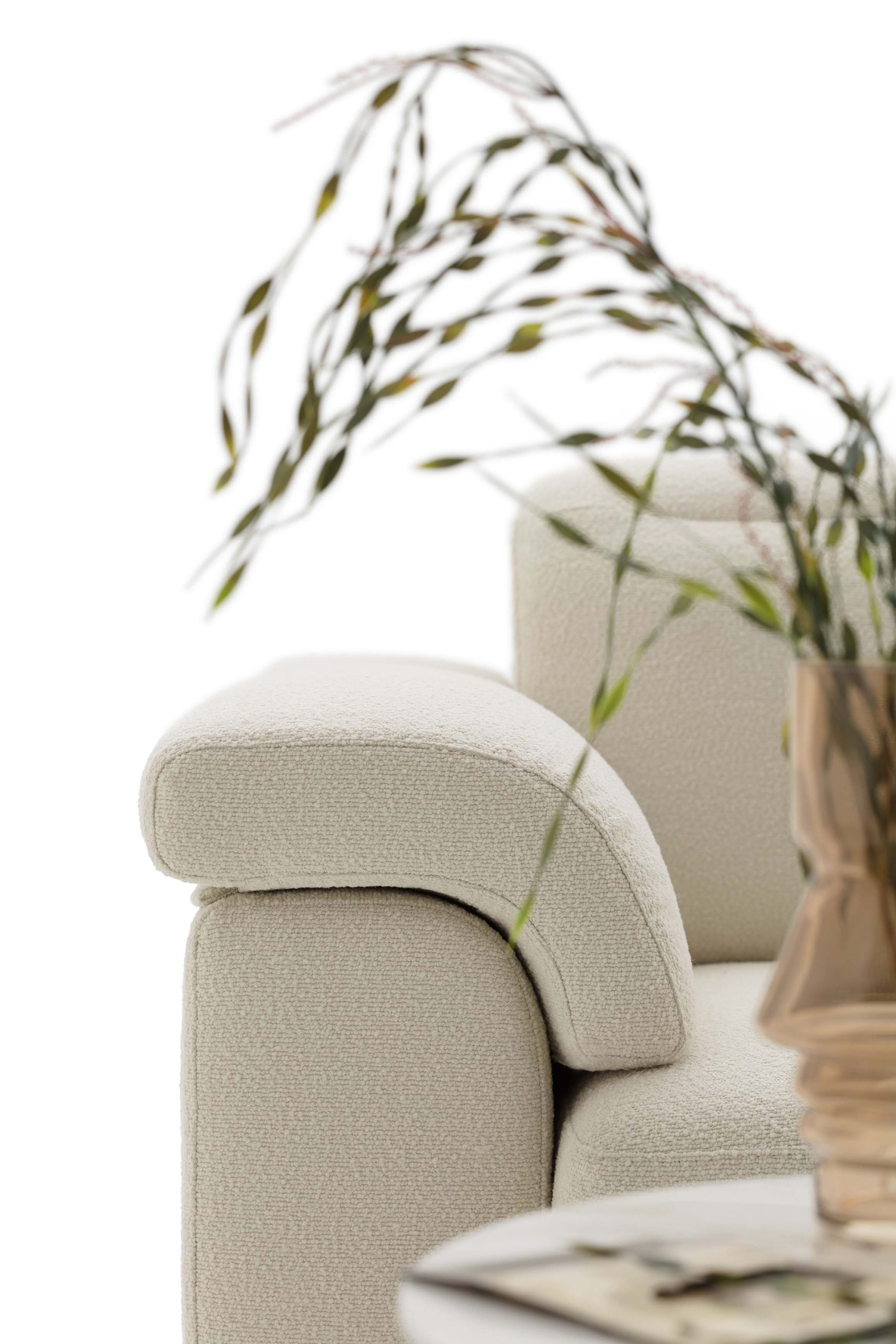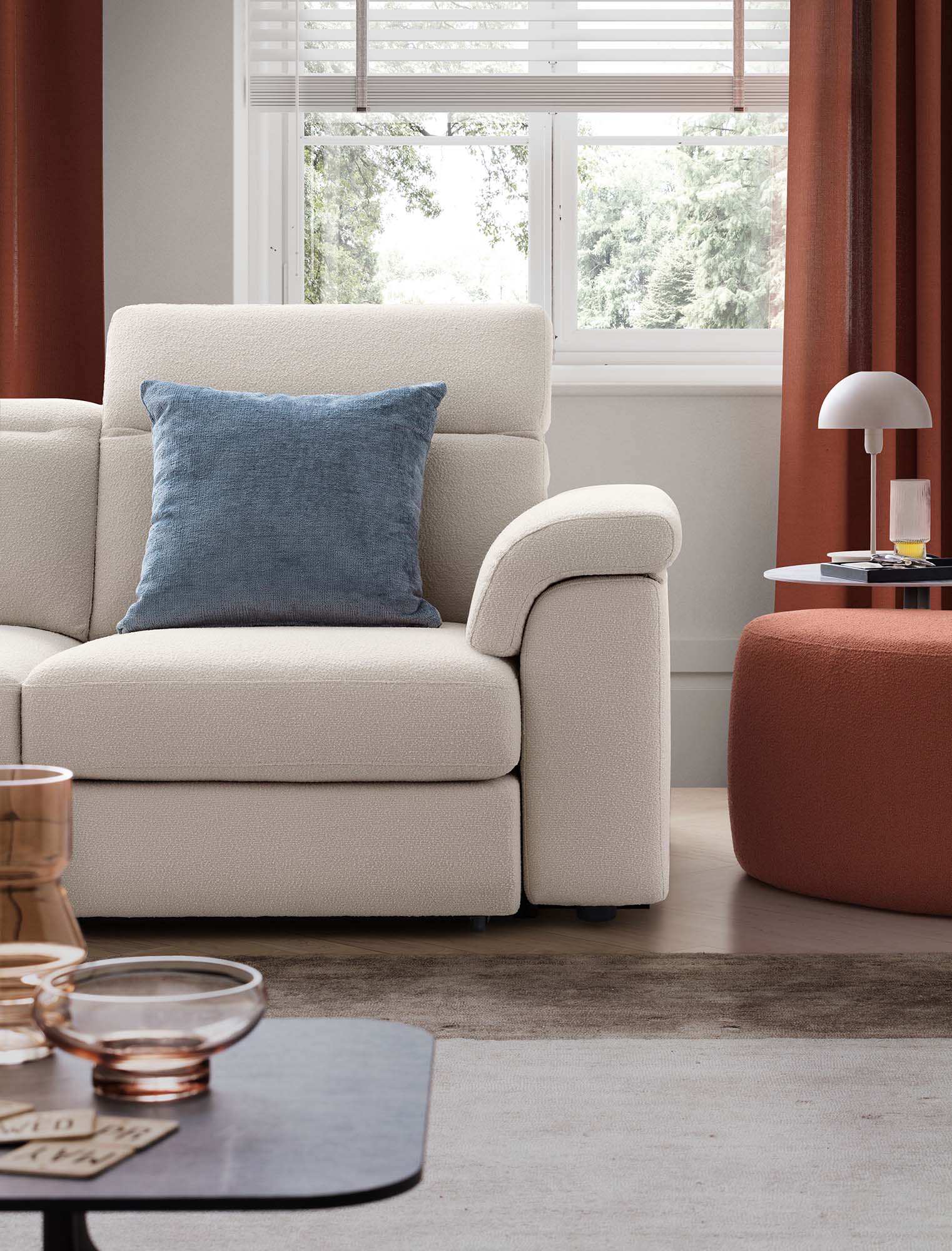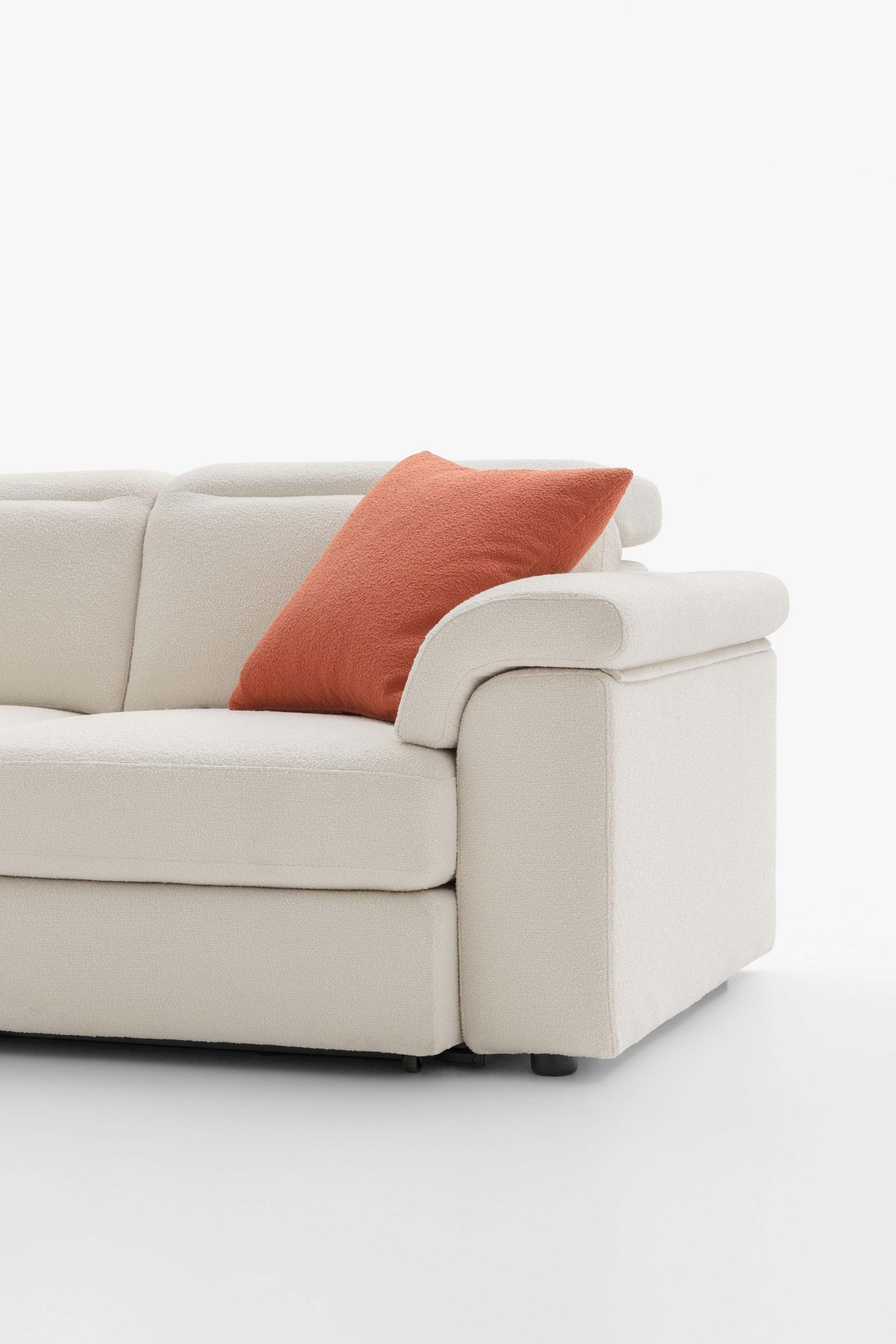 Il divano Swan Double di LeComfort combina eleganza curvilinea e funzionalità avanzata: le sue sedute estraibili permettono di regolare la profondità per un relax su misura, mentre i poggiatesta regolabili (7 posizioni) offrono un comfort adattabile a ogni esigenza.