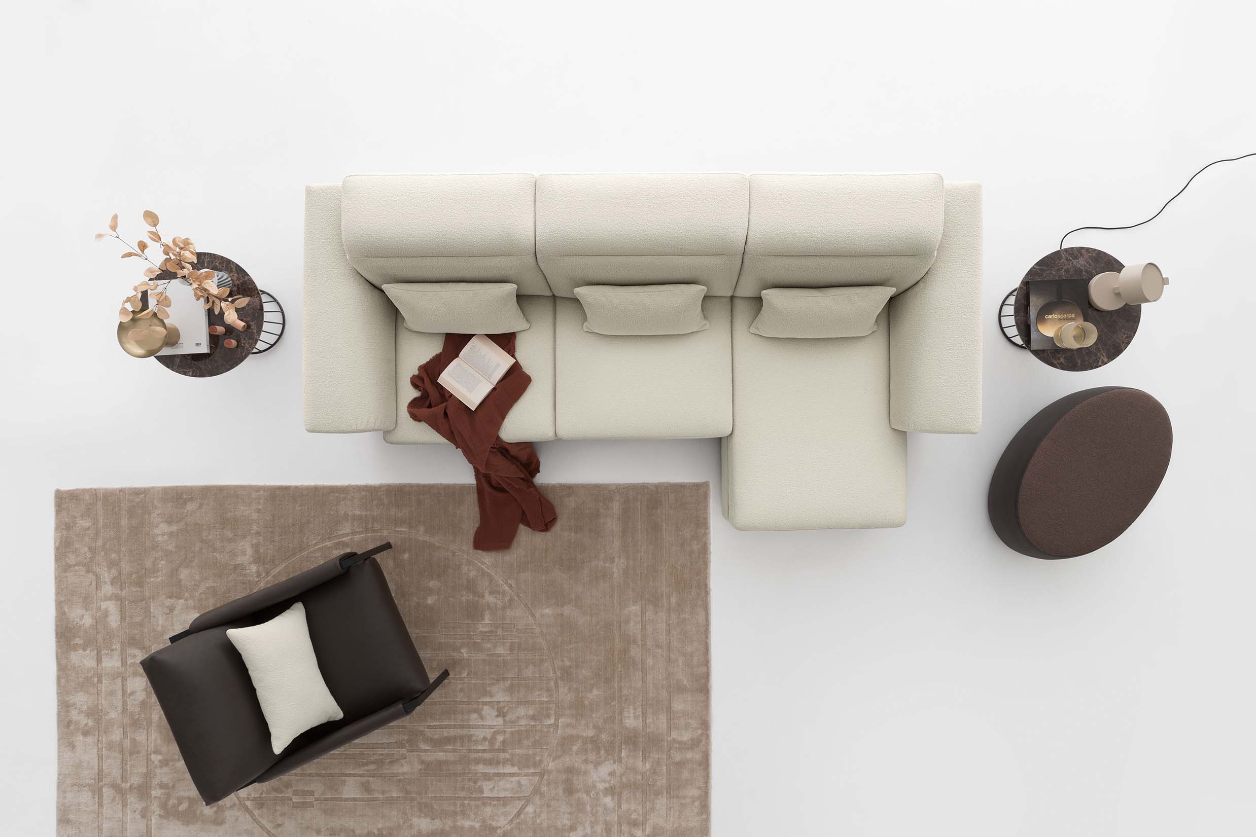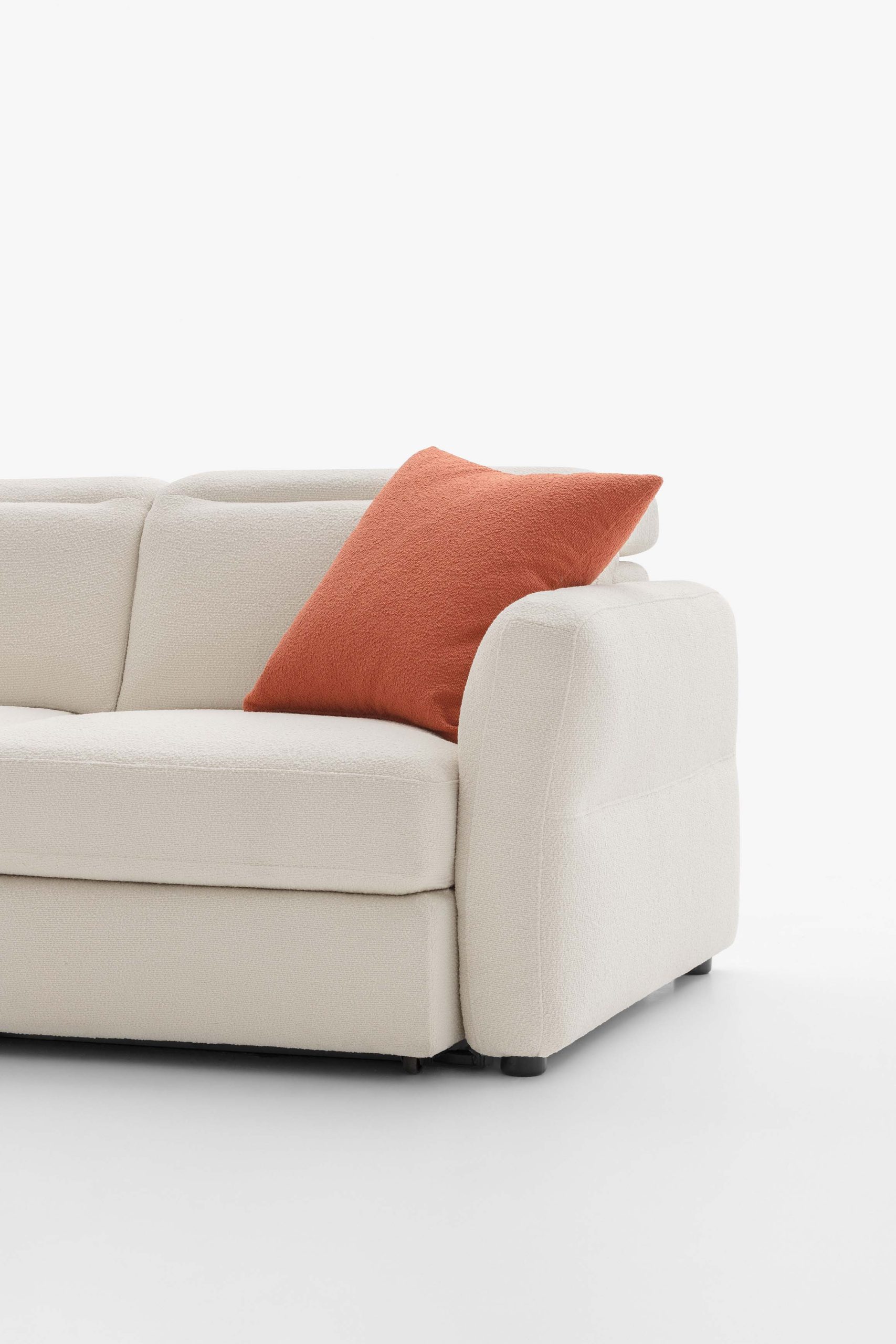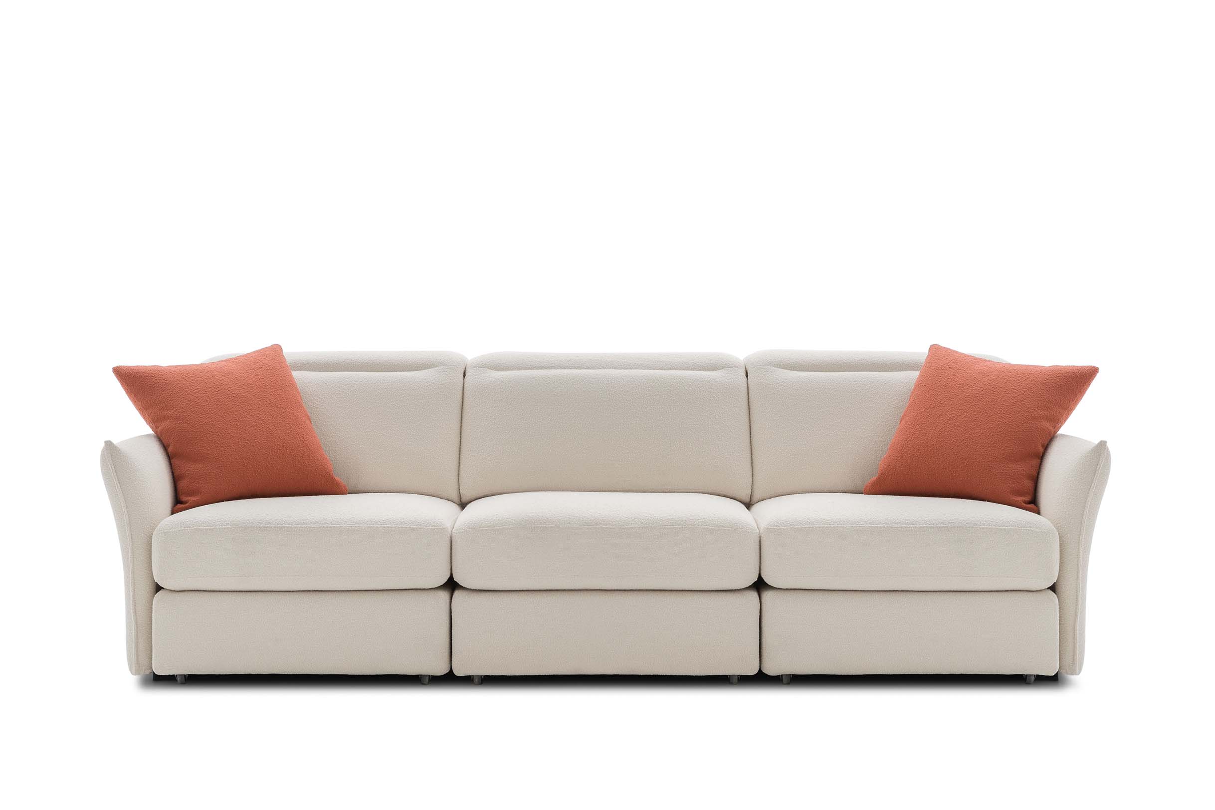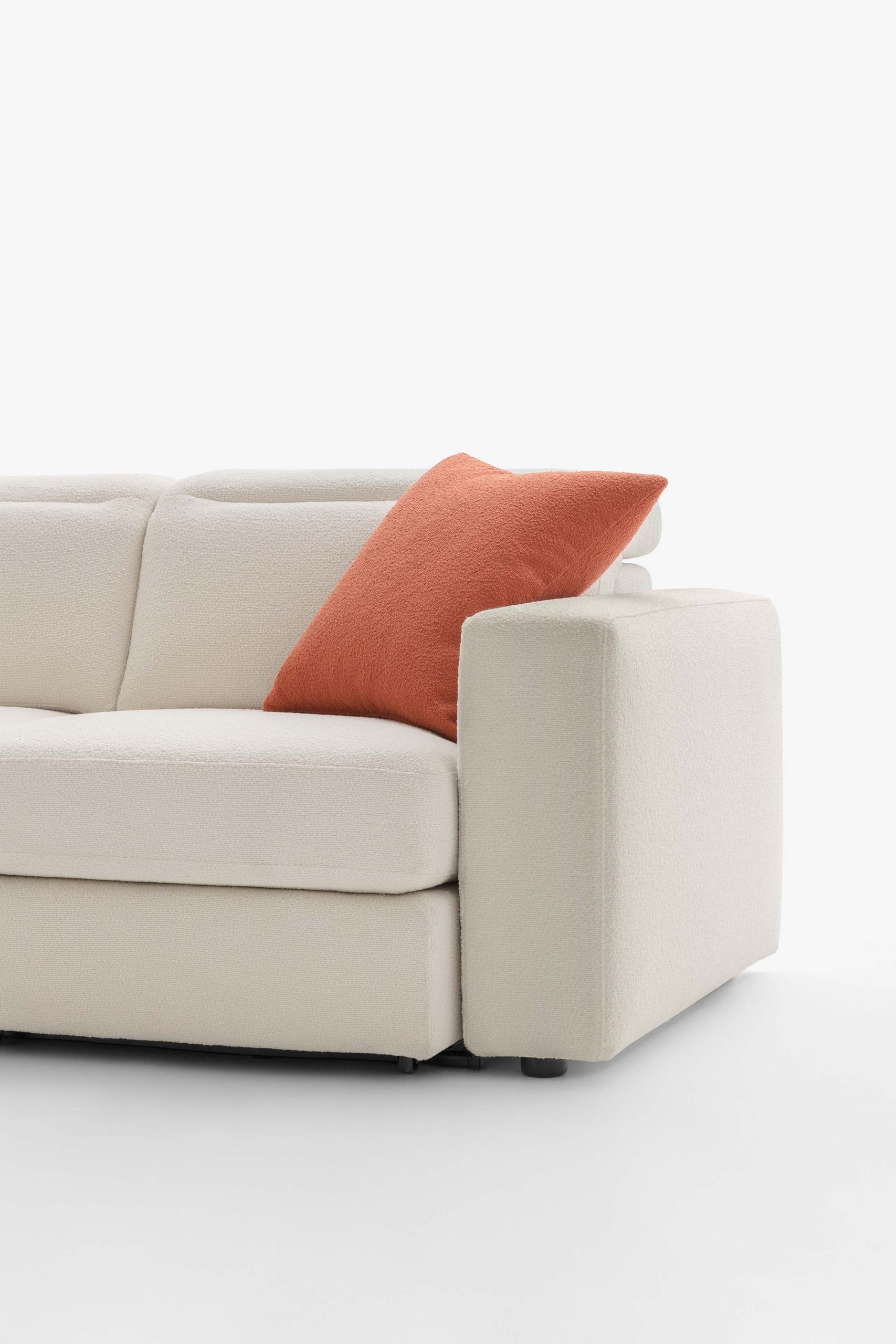 Il divano Swan Double di LeComfort combina eleganza curvilinea e funzionalità avanzata: le sue sedute estraibili permettono di regolare la profondità per un relax su misura, mentre i poggiatesta regolabili (7 posizioni) offrono un comfort adattabile a ogni esigenza.