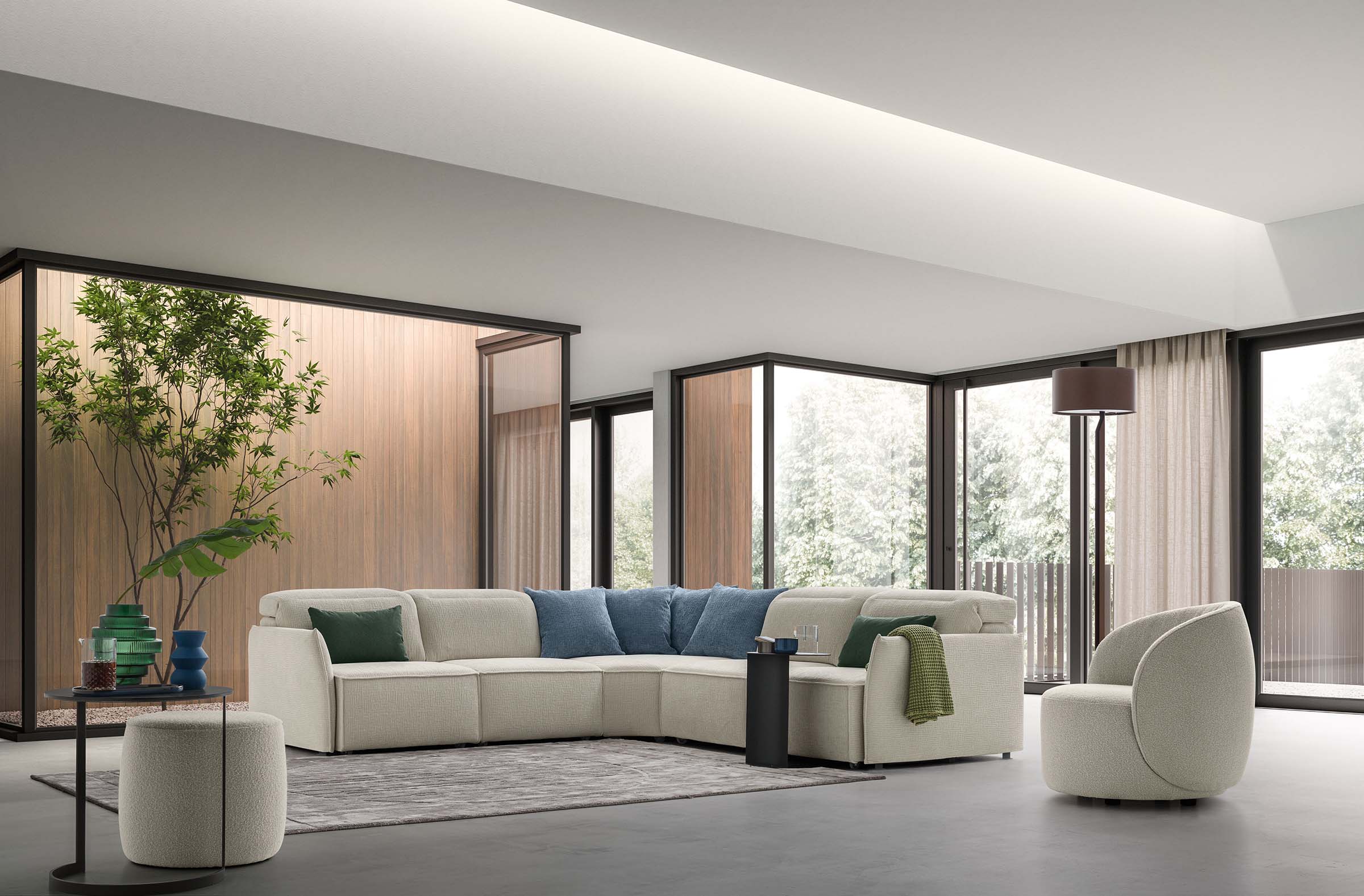 Swan è parte della collezione Space di LeComfort, un modello modulare elegante e funzionale, ideale per un living moderno dove design e relax si incontrano in modo armonioso e Made in Italy.