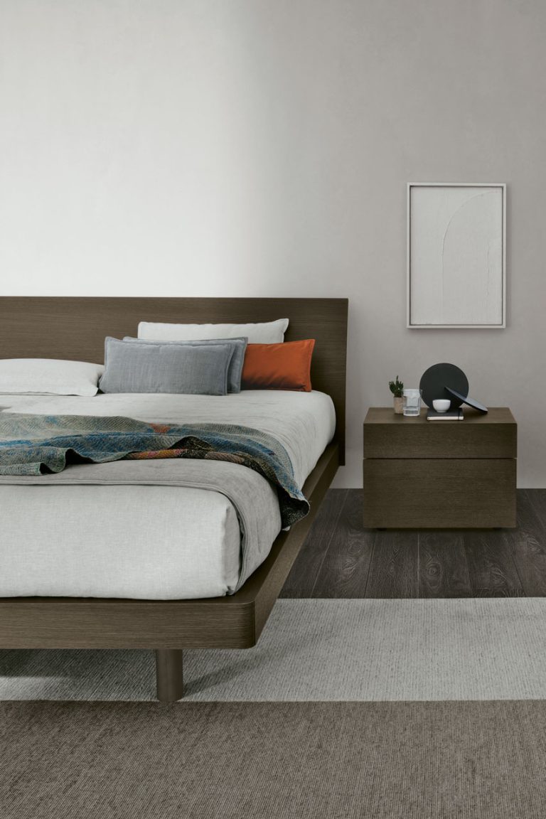 Il letto Clio di Tomasella unisce design essenziale e raffinatezza artigianale. La testiera leggermente curvata all’indietro trasmette un senso di leggerezza e relax, mentre la struttura — disponibile in legno rovere (sabbia, moka, carbone) o in laccato opaco/lucido/poro aperto — garantisce versatilità stilistica. Il modello è disponibile in diverse misure e configurazioni, con o senza contenitore, permettendoti di adattarlo perfettamente al tuo spazio notte. Con Clio, la zona notte diventa un ambiente armonioso e contemporaneo.