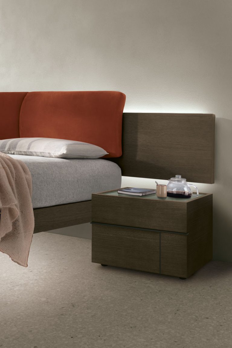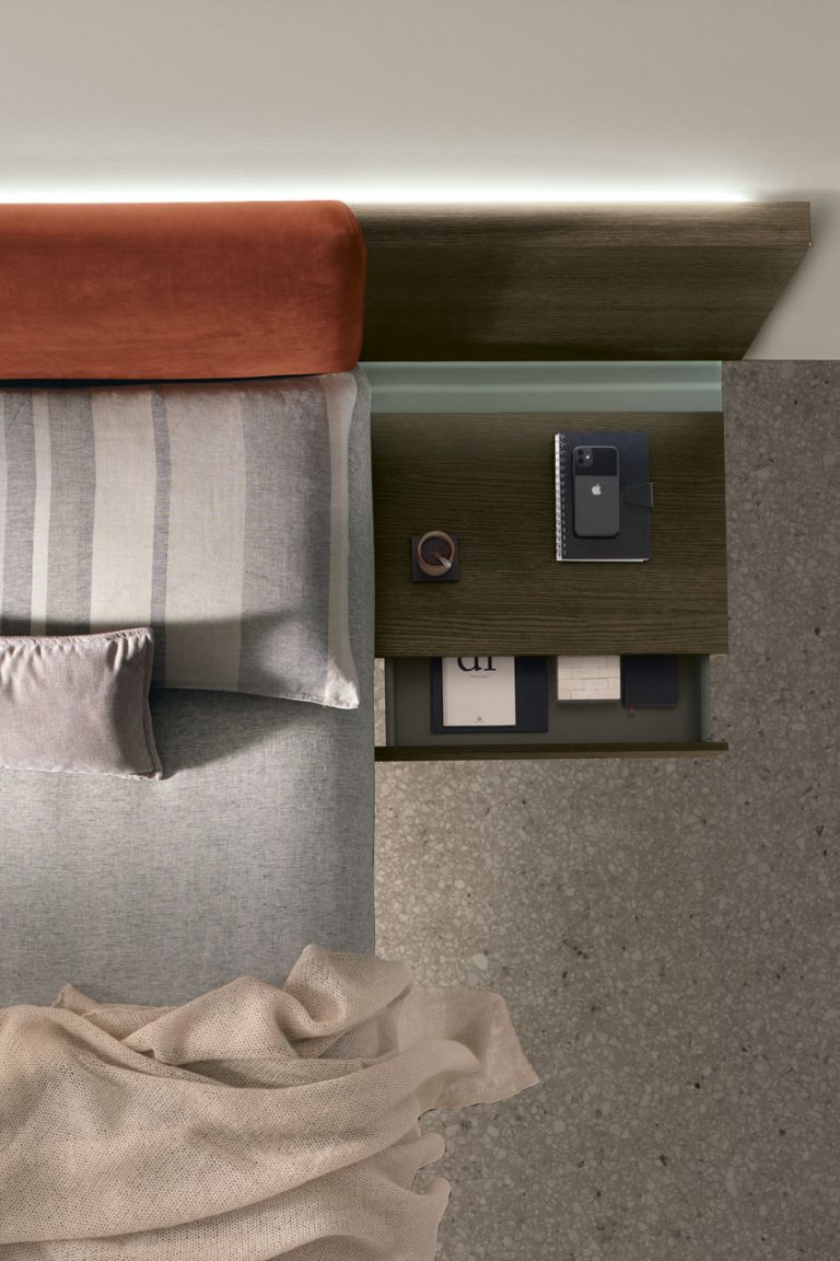 Pensato per la camera moderna che ama arredare con stile e funzionalità, questo letto unisce comfort, estetica sartoriale e soluzioni salvaspazio in modo armonioso.