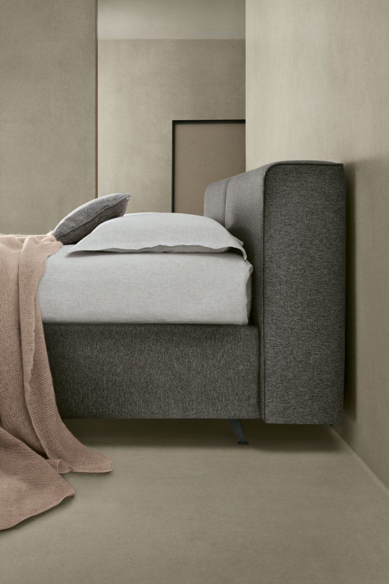 Un altro elemento distintivo riguarda l’altezza del giroletto, disponibile in due varianti: 20 cm oppure 25 cm. Questa possibilità consente di adattare il letto alle proporzioni della stanza e allo stile dell’arredamento. Inoltre, la scelta tra diversi tipi di piedini permette di personalizzare ulteriormente l’aspetto del modello, rendendolo coerente con ambienti moderni, contemporanei o soft-industrial.