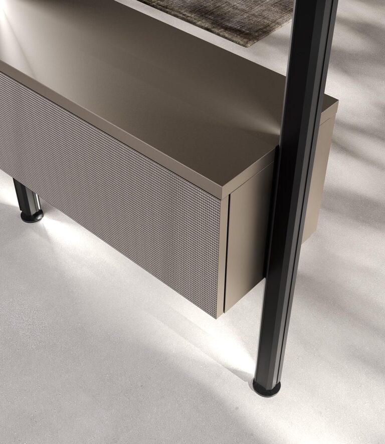 Inoltre, la possibilità di personalizzazione consente di adattare il sistema alle diverse esigenze abitative, rendendolo ideale per ambienti di varie dimensioni. Il design minimal, arricchito da dettagli ricercati, permette infatti di creare soluzioni uniche e perfettamente integrate con lo stile della casa.