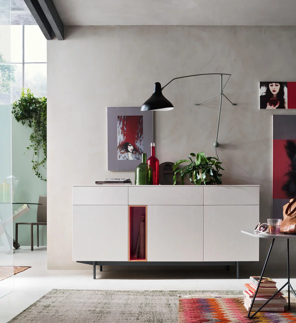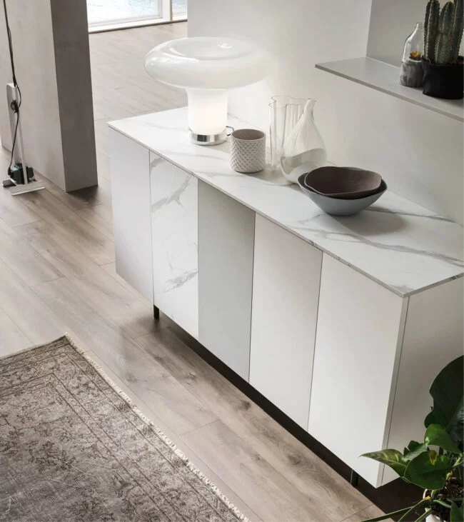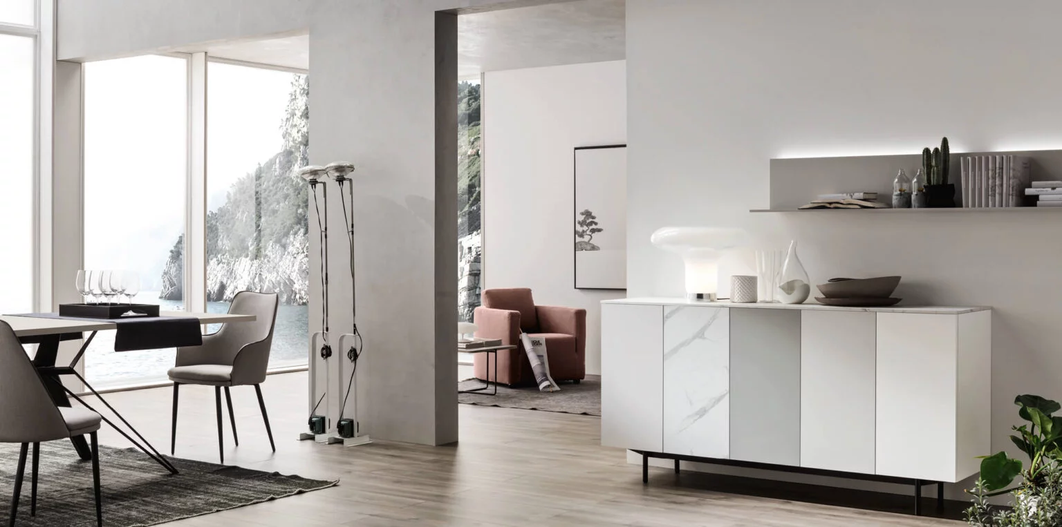 La madia Seta plus rappresenta una soluzione d’arredo versatile e contemporanea, pensata per valorizzare la zona giorno con stile. Infatti, è configurabile in diverse versioni, tra cui a terra, sospesa o con piedini di design. In questo modo, si adatta facilmente a differenti esigenze estetiche e funzionali. Inoltre, il suo design moderno la rende perfetta per ambienti eleganti e dinamici.