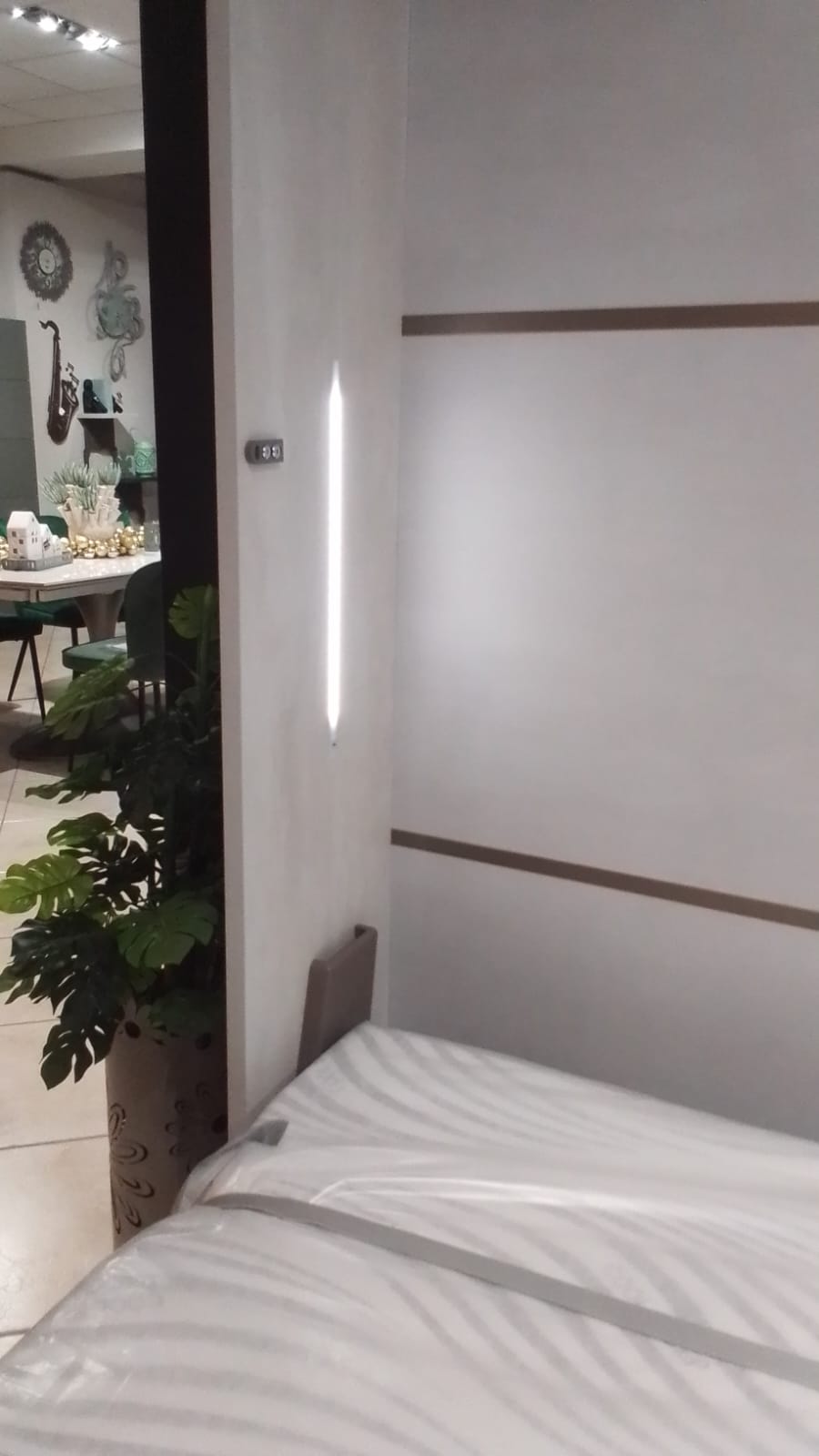 Scopri il fascino e la funzionalità del letto trasformabile salvaspazio, un capolavoro di design che unisce estetica e praticità. La sua apertura verticale è progettata per ottimizzare lo spazio, mentre la struttura in spatolato bianco e la finitura in pietra vulcano conferiscono un tocco di eleganza contemporanea. L’integrazione di una luce LED incassata sui lati e sul frontale aggiunge un’atmosfera accogliente e moderna.