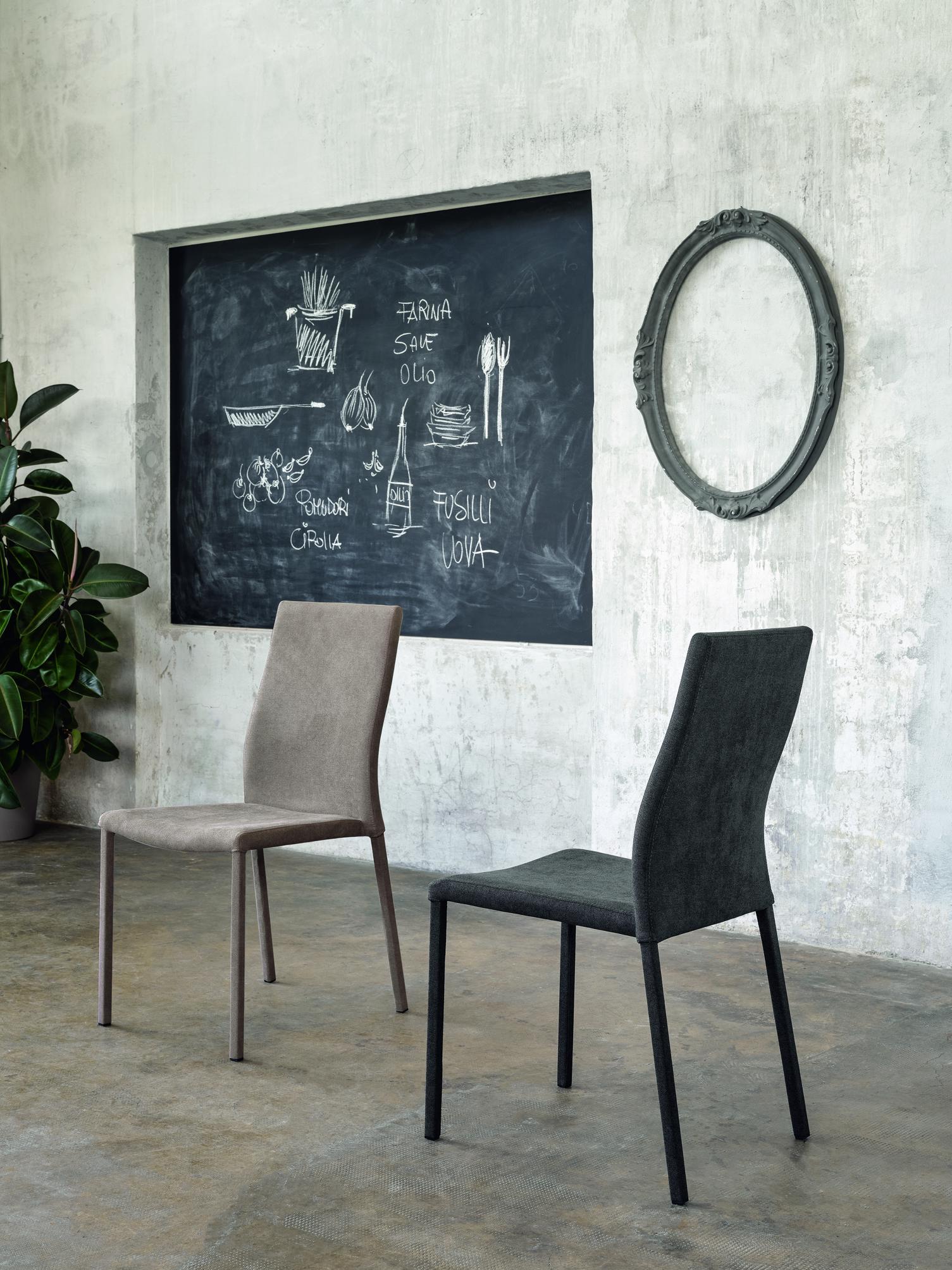 Una sinuosità appena accennata che ammorbidisce ergonomicamente la fascia lombare: forse la linea più pura che una sedia di questo stile possa raggiungere, per il massimo del comfort e una leggerezza inaspettata e insolita.