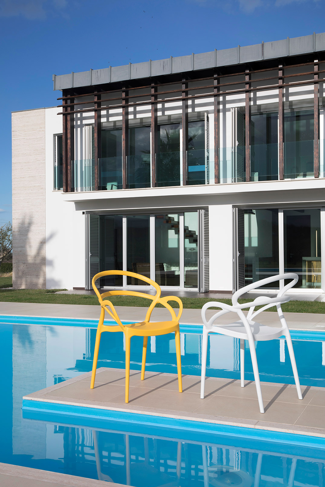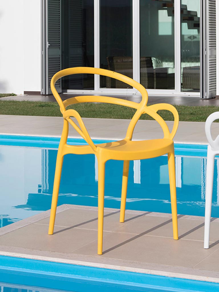 Sedia Nadir S109 con struttura integrale in polipropilene opaco in diverse varianti colore (adatta anche per uso esterno).