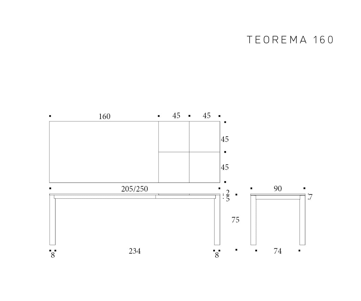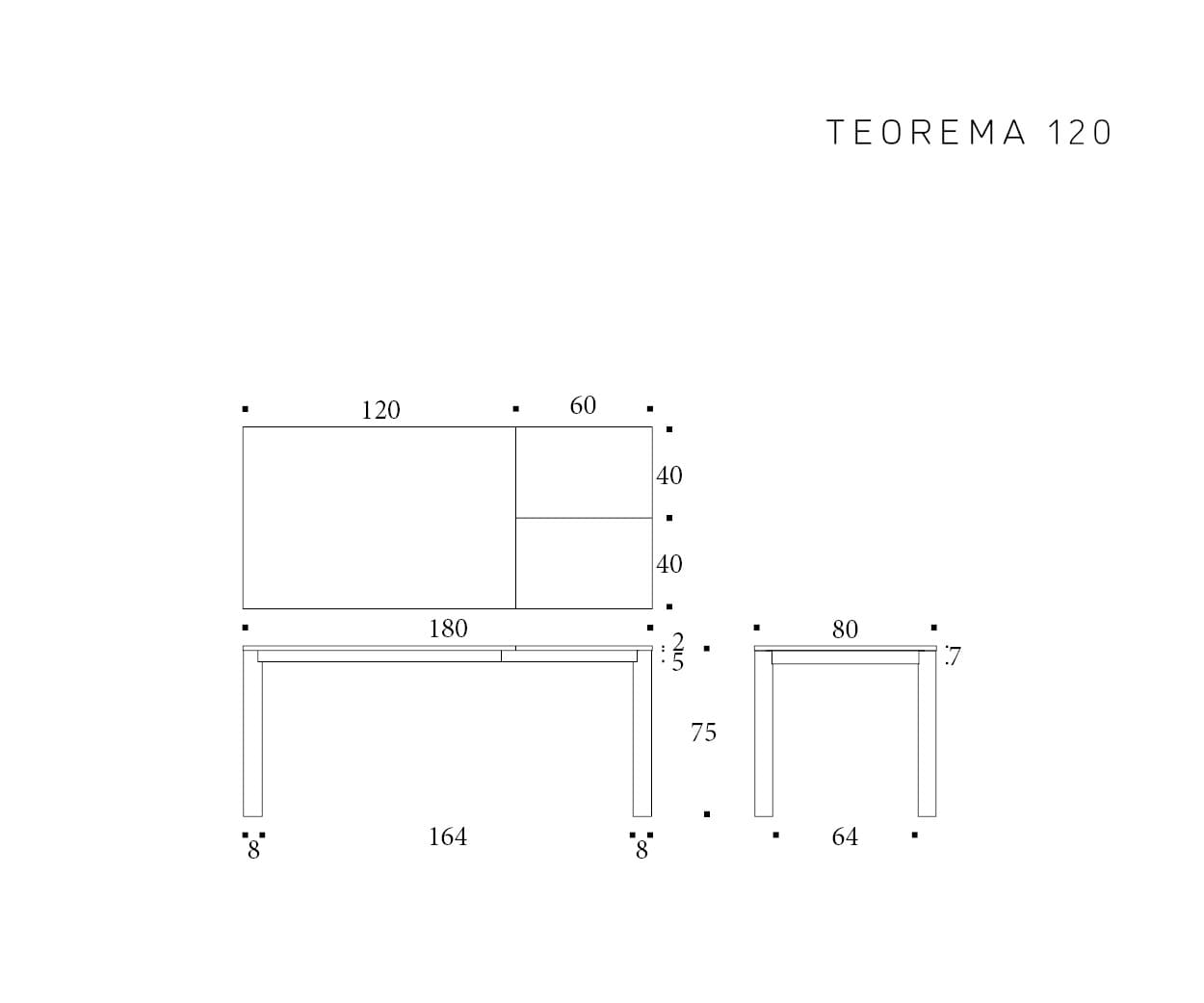 La caratteristica forma triangolare delle gambe, regala un’immagine di eleganza formale che ben si presta ad arredare contesti contemporanei. La tesi è quella di avere un piano per le differenti esigenze abitative, e teorema é la risposta concreta alla ricerca del bello “funzionale”.